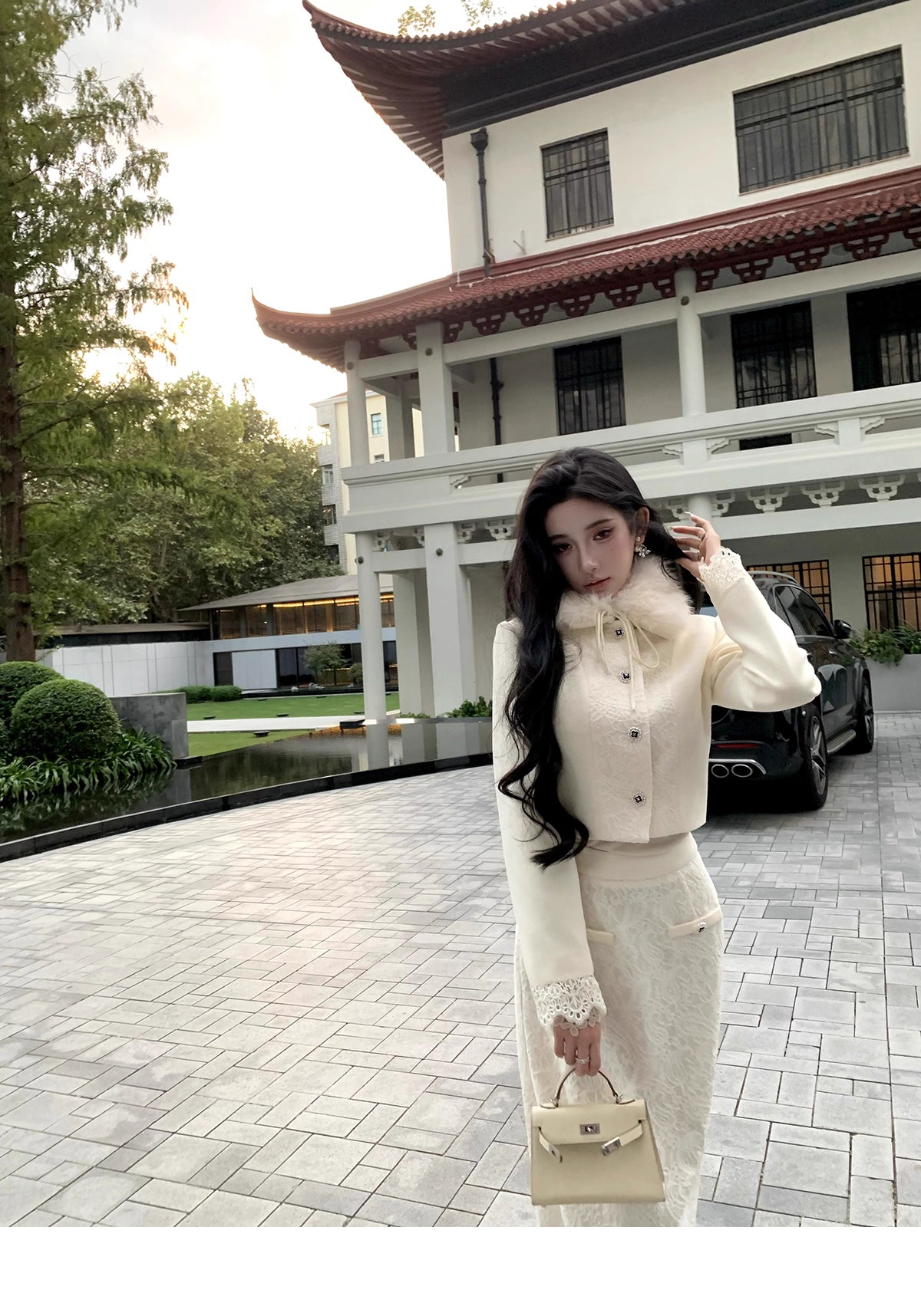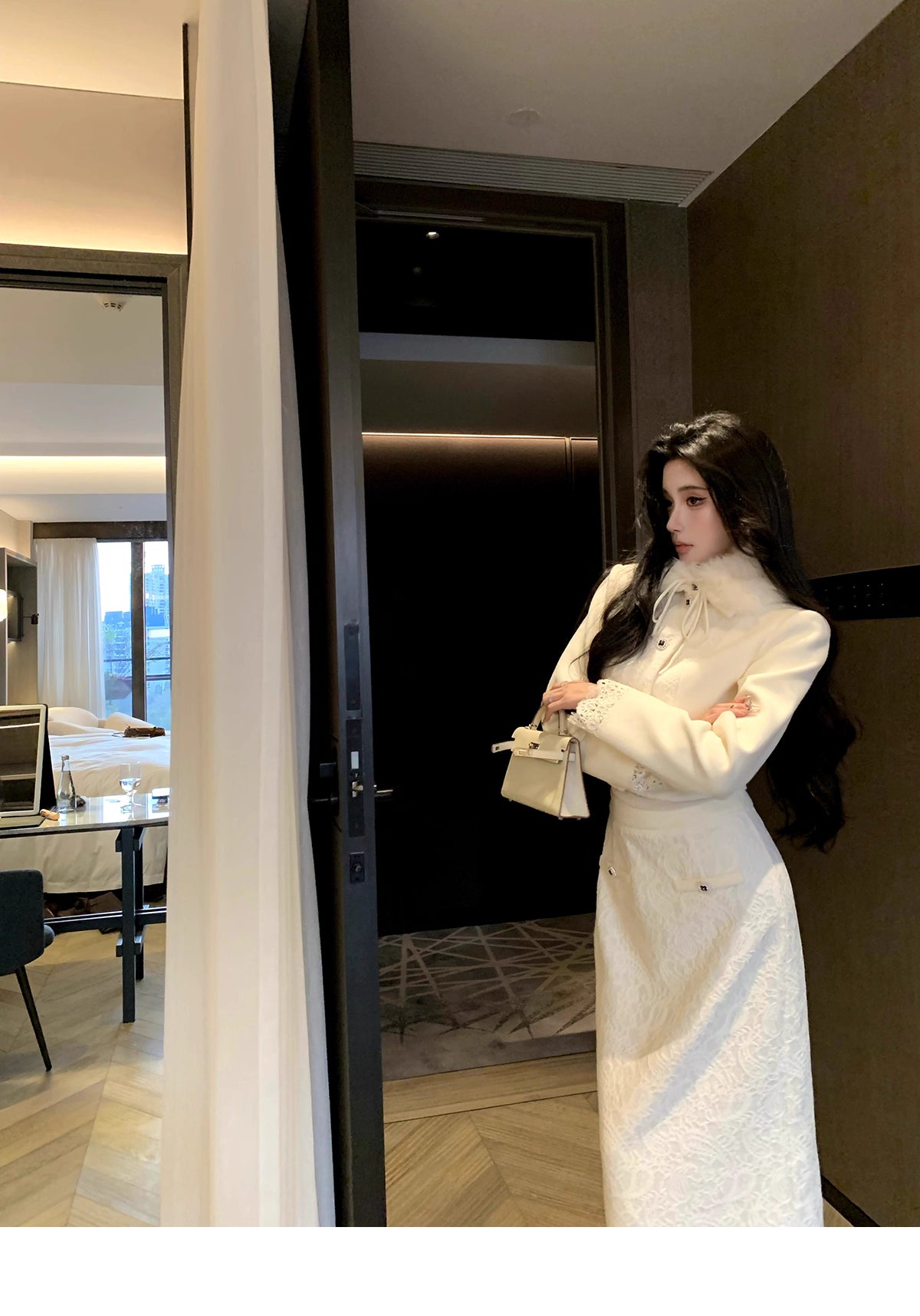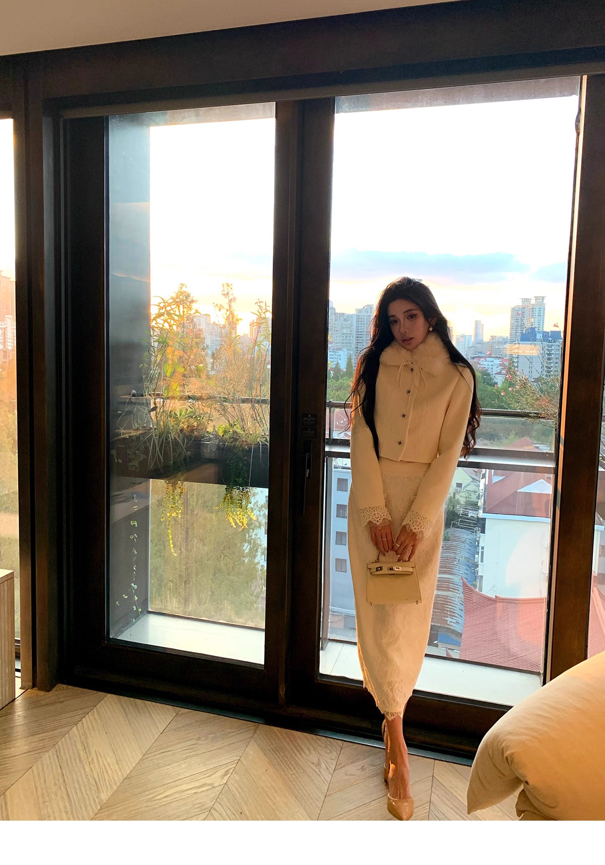 襟にファー付きのショートジャケット