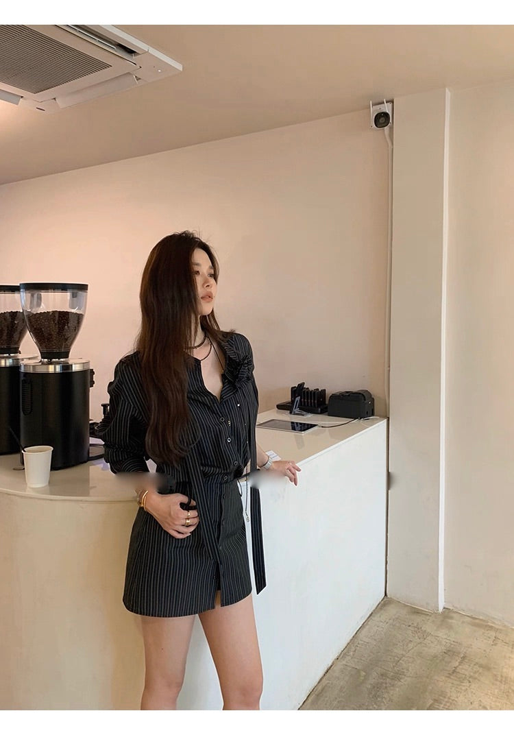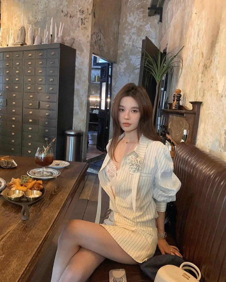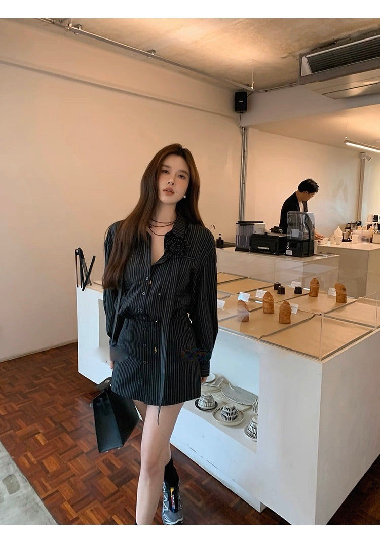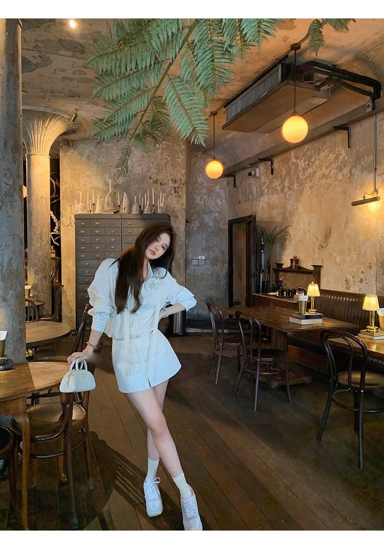 Corsage Stripe Shirts & Pants コサージュ付 ストライプシャツ&パンツ