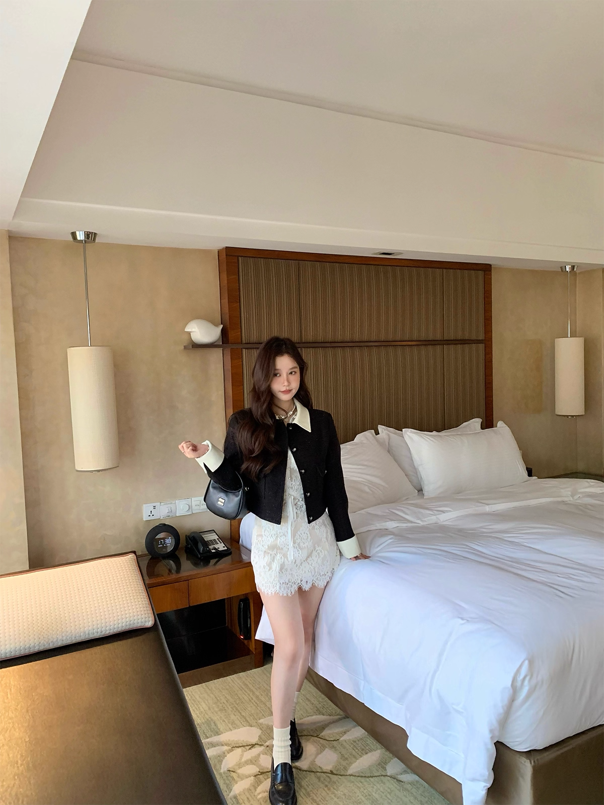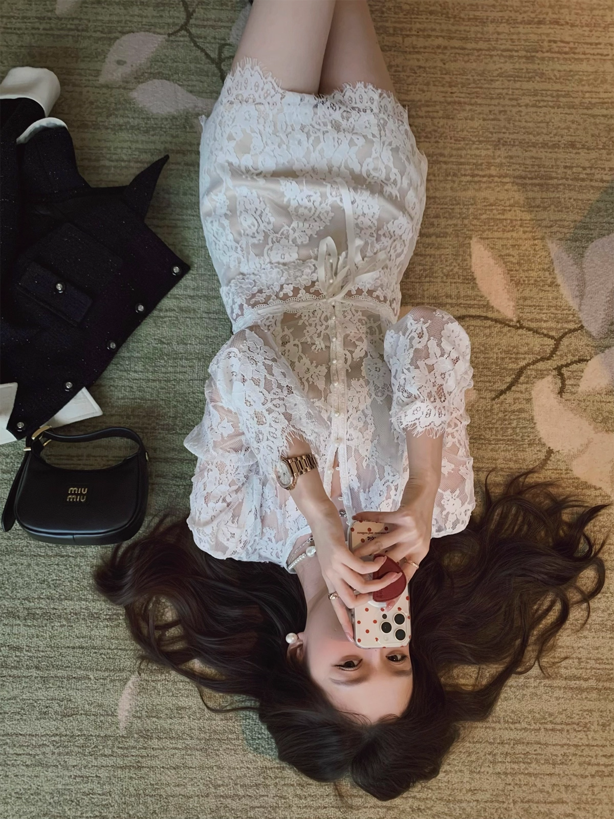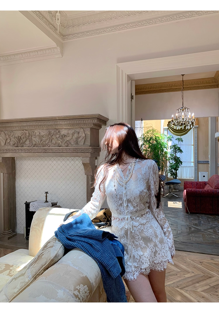レース素材のシャツとスカートのセット